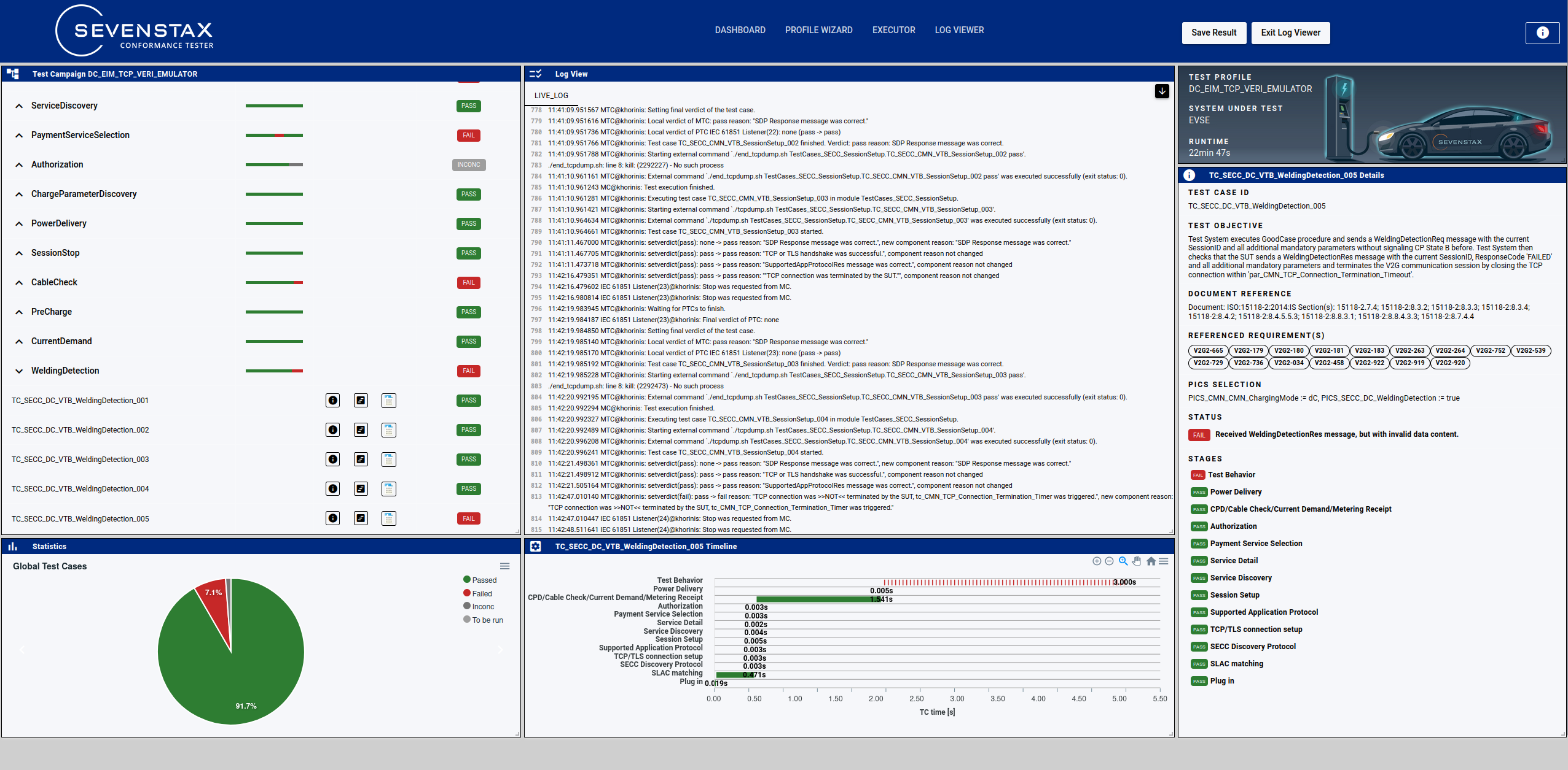 SEVENSTAX Conformance Tester is a powerful, easy-to-use tool designed to verify the communication compliance of Electric Vehicles (EV) or Electric Vehicle Supply Equipment (EVSE).